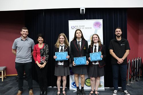 Nine Year 12 Chemistry students (Sarah Collins, Marina Aleksic, Kennedy Hosking, Keira Sullivan, Pippa Hall, Maryam Habib, Sarah King, Katelyn Graham and Emily Cox) represented Hamilton Girls' High School at the ChemQuest competition at Waikato University on Wednesday 26th October. They competed in groups of three against 48 other teams from the Waikato Region.