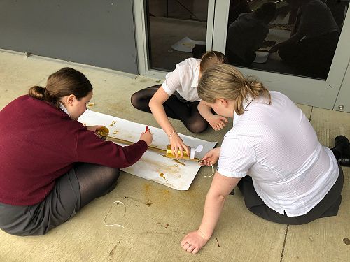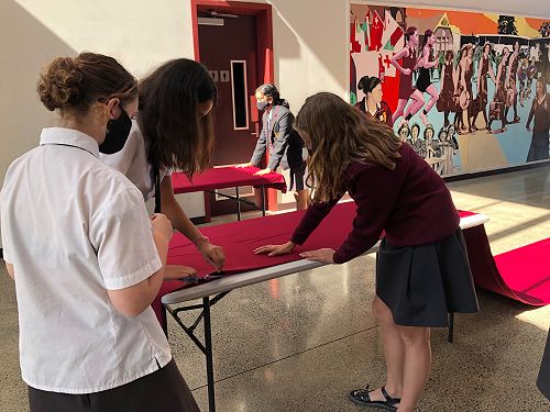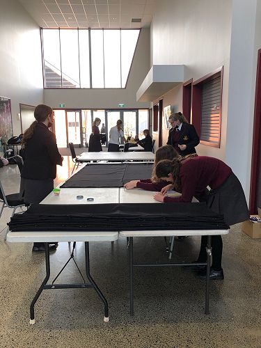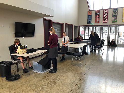 To date the students have worked out a fabric shroud for the Sheilah Winn Shakespeare group, painted masks and applied makeup for the same performance, repurposed and organised a cupboard to store Pasifika and Dance costumes, laundered and put costumes back into the wardrobe, labelled boxes of costumes in the wardrobe, made a collage of production photos to fit into a frame for the wall, hung curtains in the Drama room, made curtains for the Dance studio, modelled for the Year 10 Textile class, painted the canopy piano, measured and labelled a set of petticoats, made cravats for a Year 11 Drama assessment and so much more.