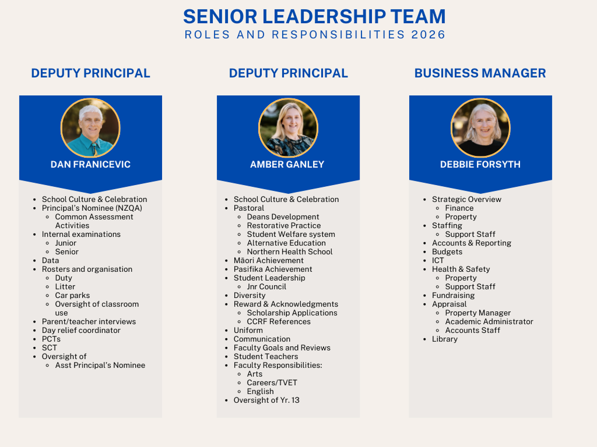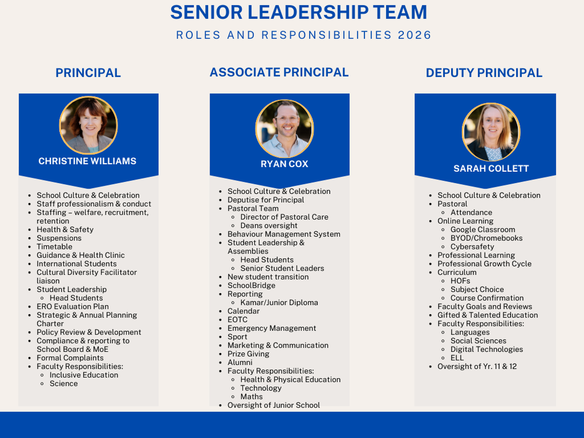 SLT Roles and Responsibilities 2026 Ryan Cox — November 7th, 2025 SLT are allocated a number of portfolios that they look after. See a list of these below. Attachments SLT Portfolios 2026 (4)