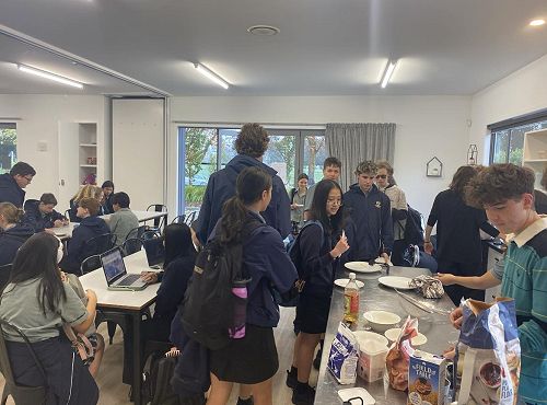 The pathway to Kai Kitchen started with simple conversations with friends and whānau, but it soon became creating a clear plan of what we wanted to do and how we wanted to do it. Kai Kitchen then opened across from Hillcrest High School, serving free breakfast from 8:00am to 9:00am four days a week. The initiative is entirely run by us and our team of 50+ volunteers that are rostered on. We have a teacher in the facility each morning to supervise.