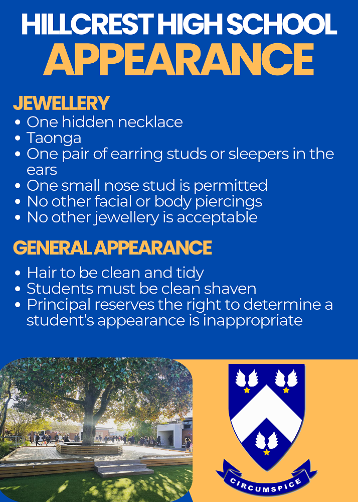 If financial circumstances are a barrier please discuss this with either your Dean or Deputy Principal responsible for uniform Amber Ganley, aganley@hillcrest-high.school.nz