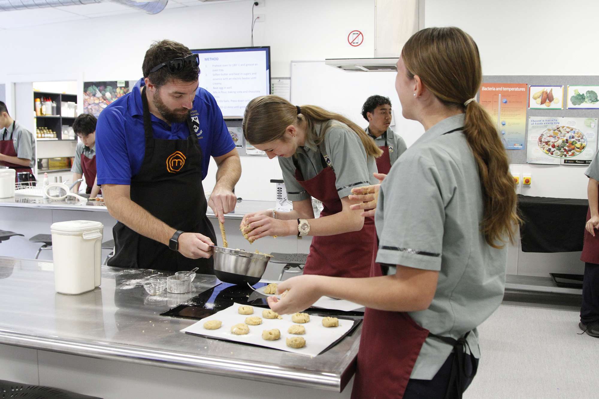 Our Hospitality and Food and Nutrition classes have had an upgrade too. Check out our Yr. 9 students baking cookies under the guidance of Food Teacher Mr. McNabb.