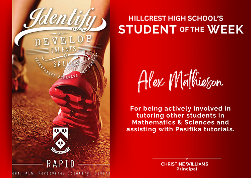 Congratulations to Yr 13 and Head Student Alex Mathieson (Rutherford House) who is the Student of the Week for Week 7.