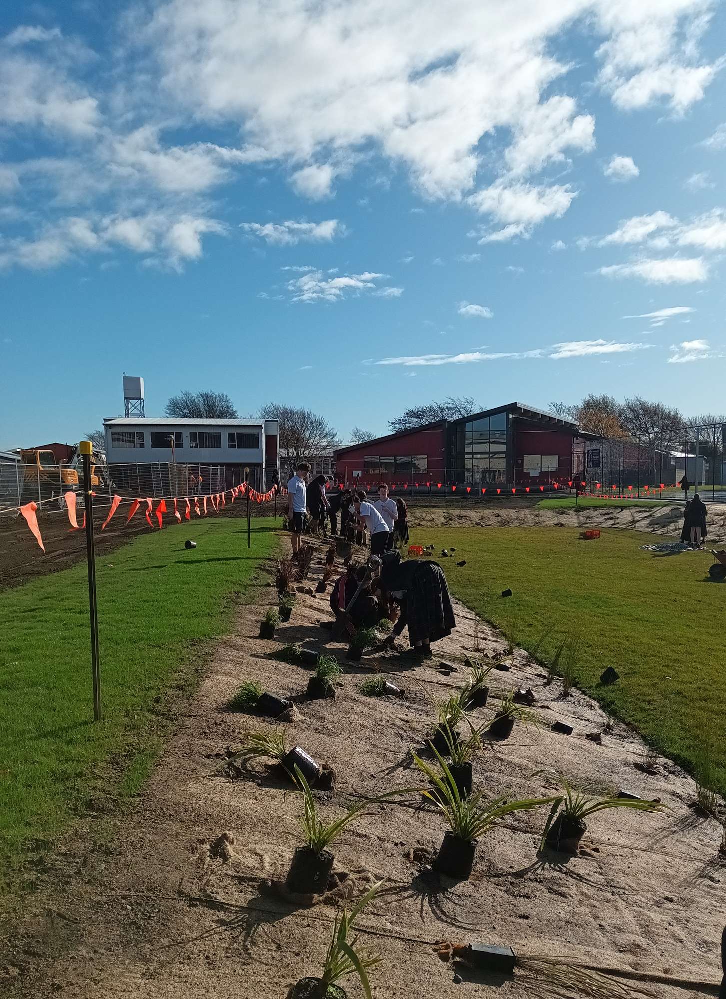 In mid-June, the Environment Committee led our Year 10 students in planting 1,500 native plants. The students got to demonstrate our school goal of Tūrangawaewae (a sense of belonging, a place to stand) by restoring the whenua closer to its original wetland state
