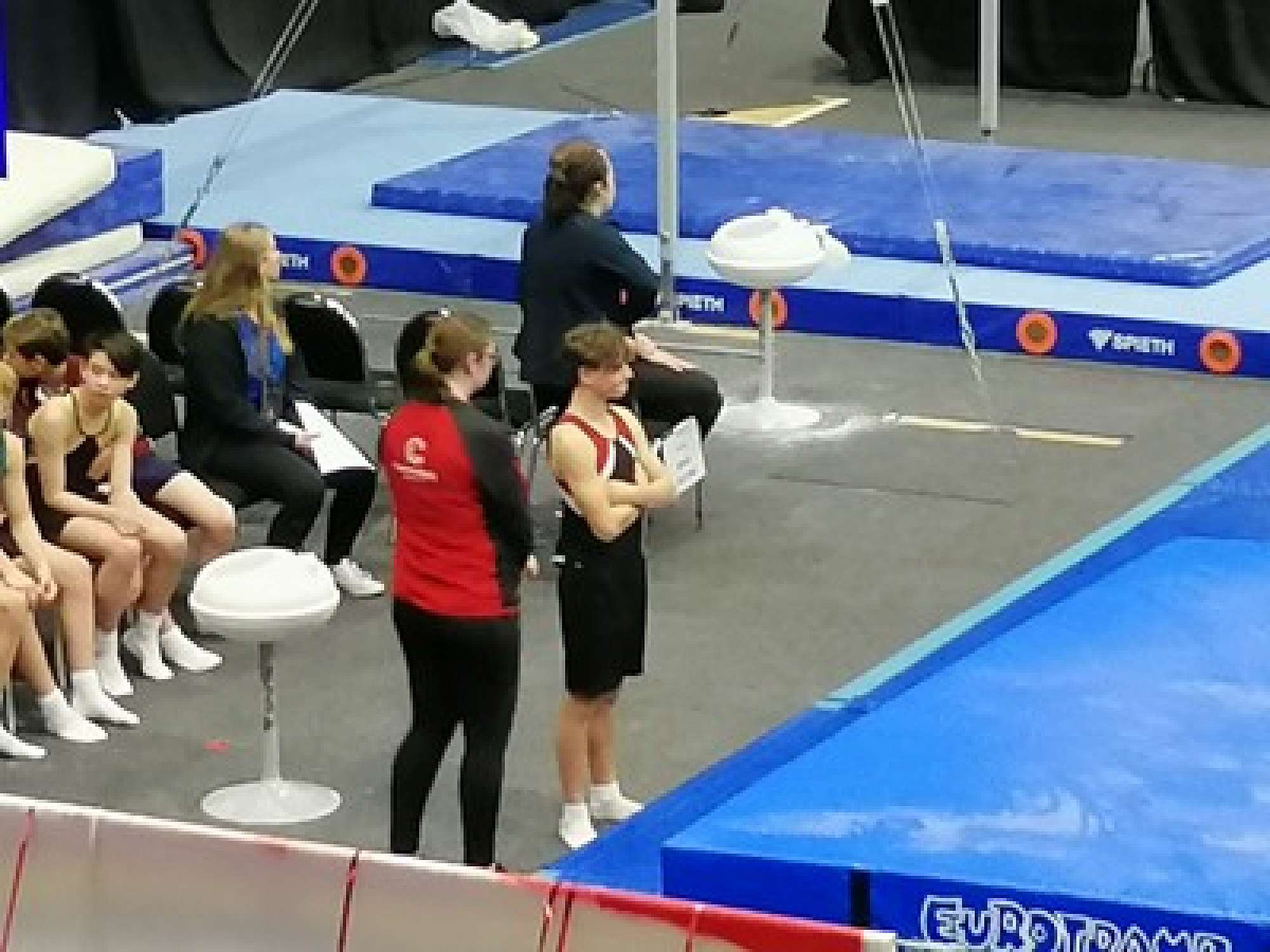 Malakai Bennett and Luke Street competed in 13-14 age group for Trampolining. The boys bounced together as a team and finished 5th in the synchronised competition.