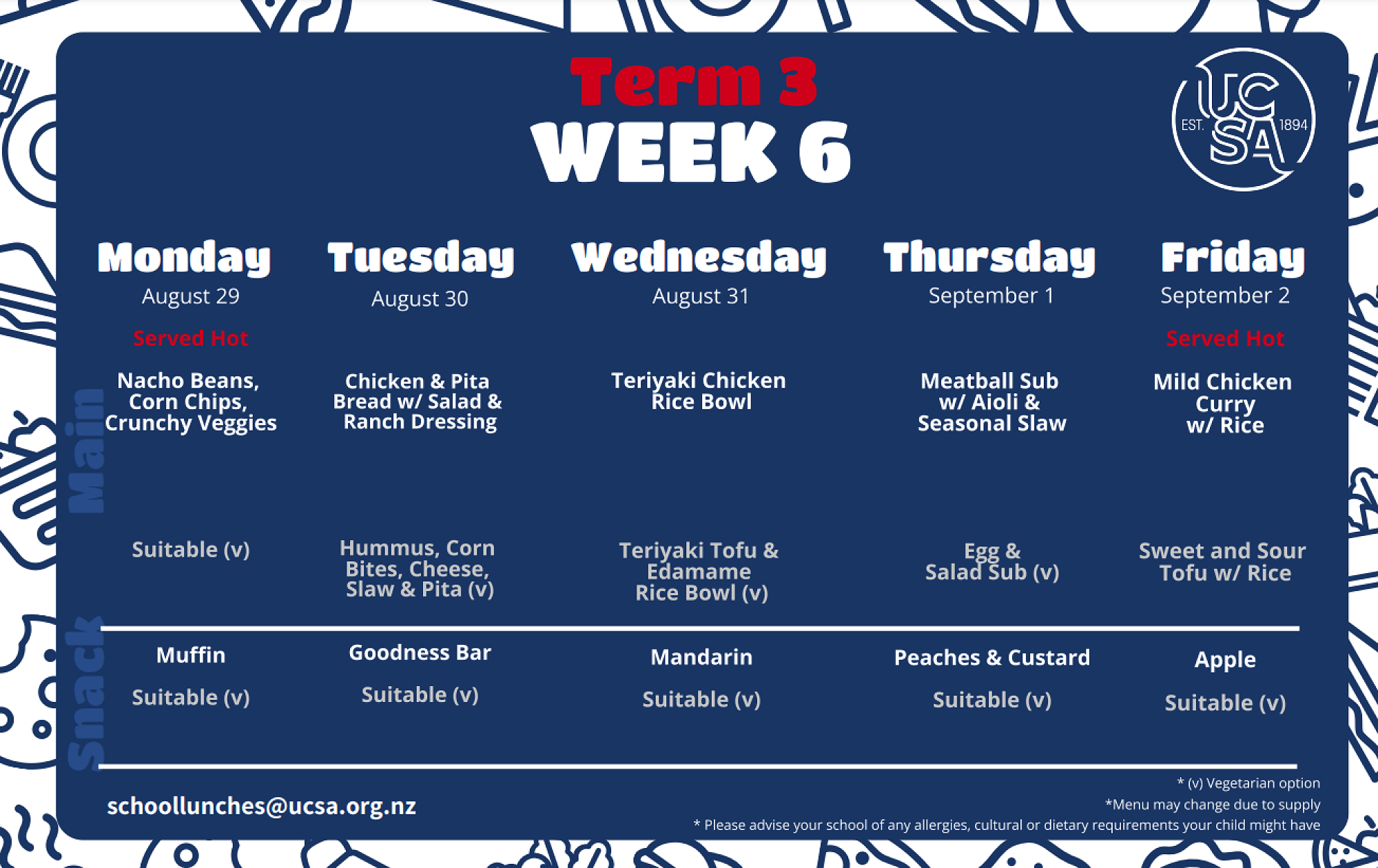 Photo by pixabay.com Weekly Student Lunch Menu HHS — August 29th, 2022 See below for student lunch menu for Week 6, Term 3 30 August to 2 September 2022 Image by: HHS