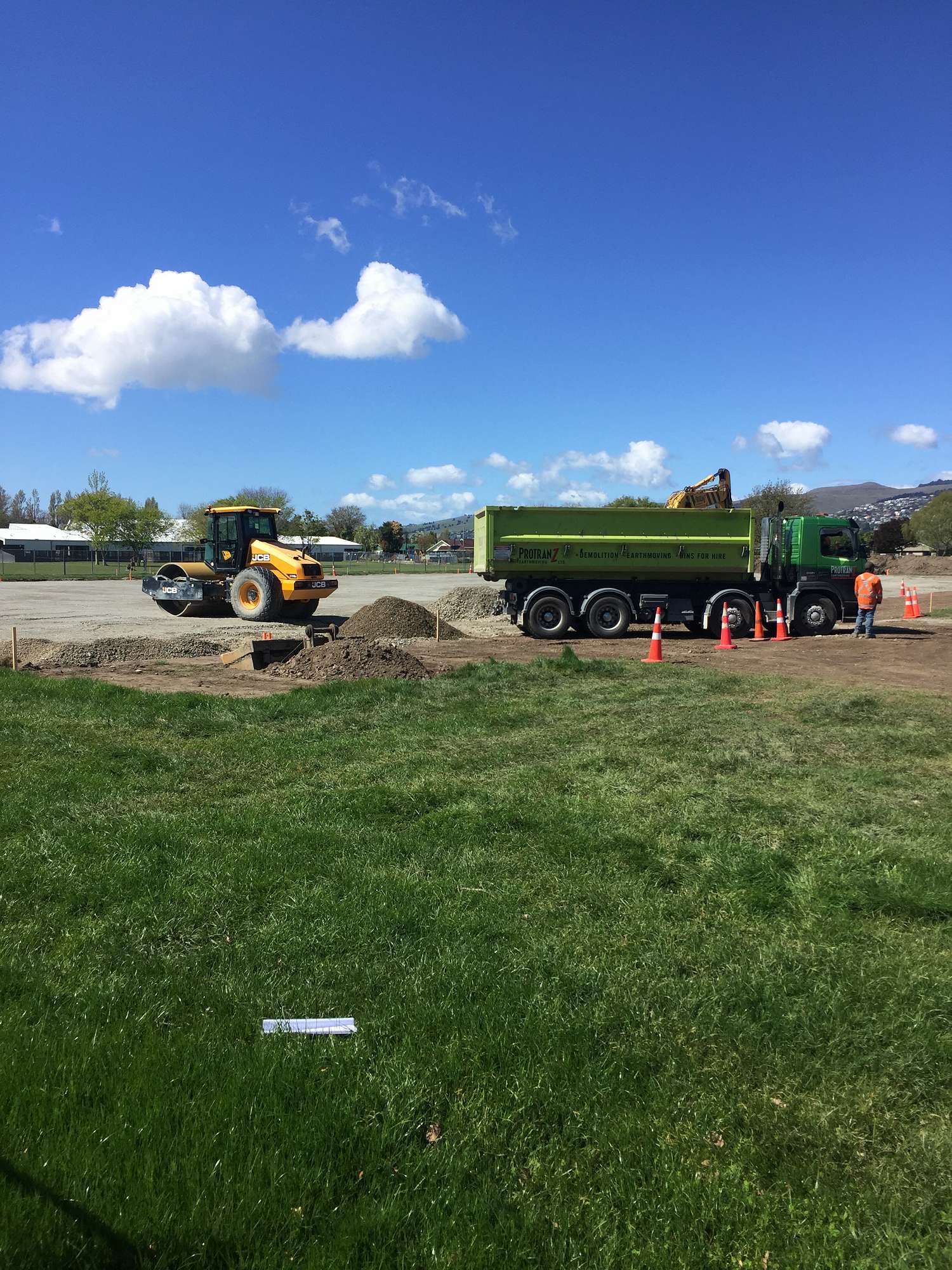 Progress is being made on the new Netball/Tennis and half court Basketball courts on the boundary of Hillmorton High and Spreydon School