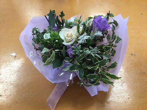 Elizabeth went for a day at the end of Term Three and was able to watch the Level 3 p0oNZMA class make table garlands. In her ‘taster’ course, the group first got a tutorial on how to make a hand wrap/bouquet and then they made one themselves from the selections of flowers NZMA had in stock. Then the group each made a boutonniere where they wrapped the flowers, using flower tape. Finally, they got to make an Oasis. This is when flowers and foliage are stuck into the oasis styrofoam that has been soaked so the flowers get a little hydration. Elizabeth gave the one she made to her mum, who loved it! At the end of the day, anyone could use the remaining flowers to make another little hand wrap if they wanted.