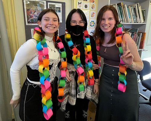 During the week, students got to make crafts, contribute to a pride wall in the Library, draw some Rainbow Chalk Art in the quads, and quickly demolished a bake sale full of delicious rainbow treats!