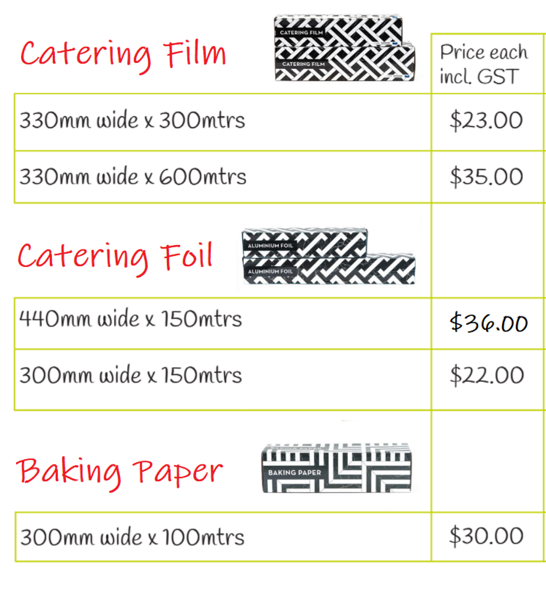 Foodwrap, Baking Paper and Tin Foil