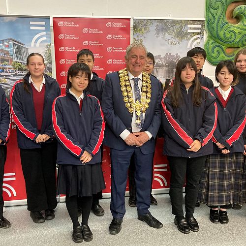 Visit this articleSome of our new Term Three international students recently attended a pōwhiri and mayoral reception at Ngā Hau e Whā National Marae.