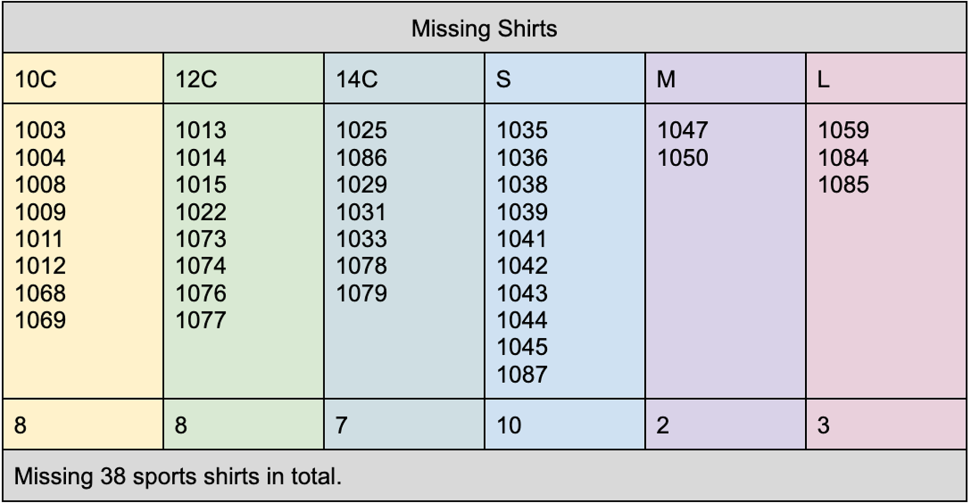 Missing Sports Shirts