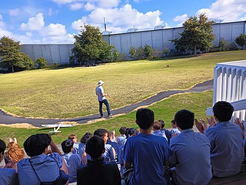 Charles ended the presentations by soaring his own impressive array of model planes above our school campus as the audience watched on, enthralled.