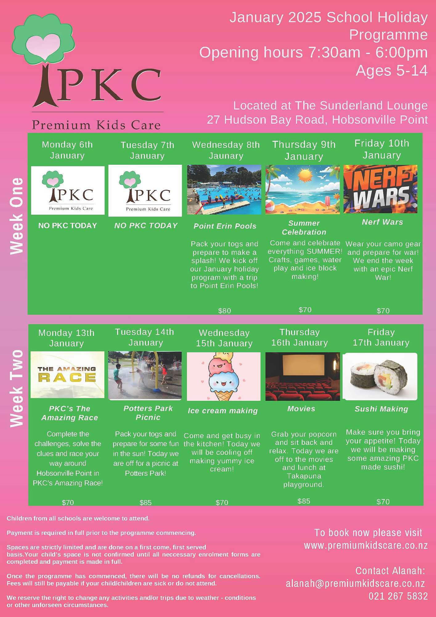 Opening hours: 7.30am-6.00pm - Ages 5-14 years - located at The Sunderland Lounge, 27 Hudson Bay Road, Hobsonville Point