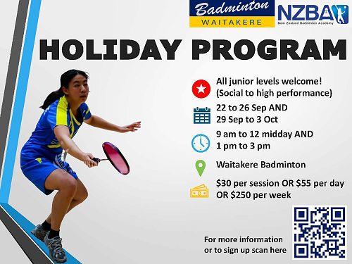 Below is our holiday programme for Term 3 at Badminton Waitakere.