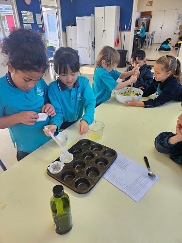 In the kitchen our junior bakers made 'Veggie and Cheese Muffins' using cauliflower, broccoli and silverbeet from our garden. These muffins were scoffed down and many students asked for seconds.
