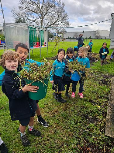 The keen gardeners really did the mahi to help weed around garden beds, and layer the brown and green matter into our compost bins.