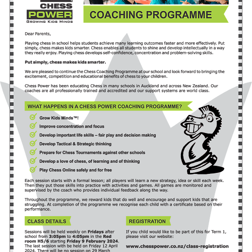 Visit this articleChess Power Coaching Programme Fridays after school 3.05pm to 4.05pm...