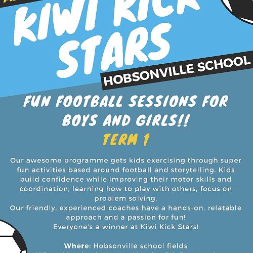 Visit this articleAfter school Football programme on Mondays 3.00pm to 4.00pm, Hobsonville School fields.