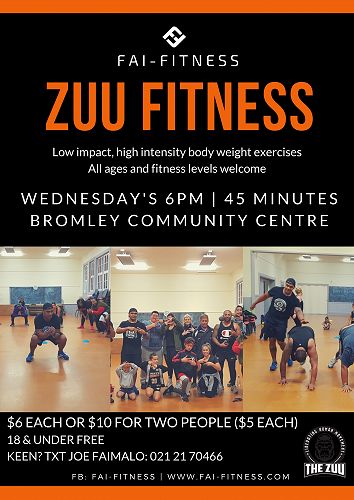 ZUU Fitness Brydee Palmer — May 10th, 2018 ZUU FitnessWednesdays 6pmBromley Community Centre$6 per person ($10 for two people)Under 18s train free Gallery