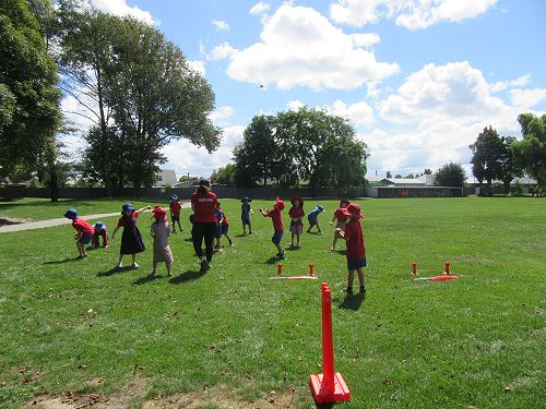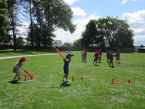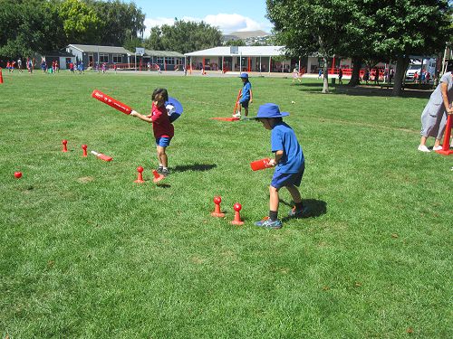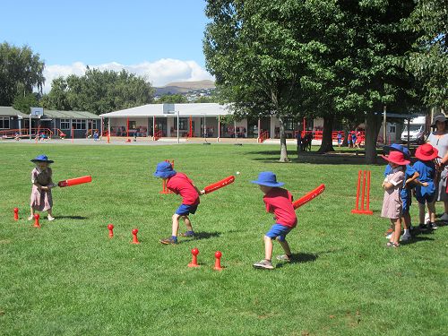 Canterbury Cricket and Halswell New World donated some new cricket equipment to our school just before Christmas last year, which was very cool. So they thought they would come in and show our year 2's how to hold a bat and catch a ball.