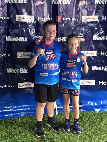 Children pictured above took part in the Weet-bix TRY last weekend. They showed manawanui to complete the course and were excited to show us their medals.