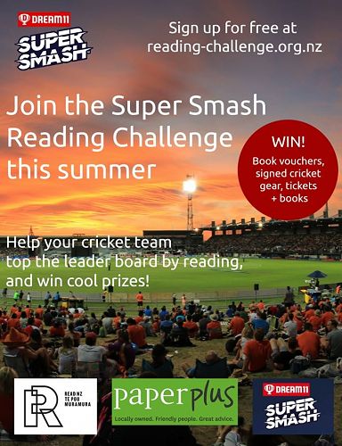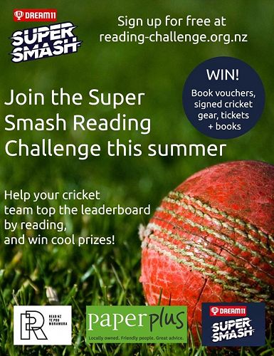 Read NZ Te Poru Muramura and NZ Cricket have teamed up this summer to encourage reading over the school holidays. Studies show primary-aged children can lose more than 6 months worth of academic progress over the summer break. Commonly known as the "summer slide." Reading for enjoyment is a great way to keep young minds active over the holidays. See the flyer below, to sign your child up for the free Summer Smash Reading challenge. Keep them reading over the holidays and maybe win some awesome daily prizes as well.