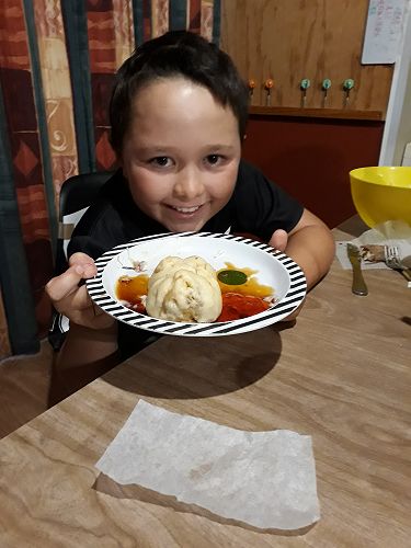 I really wanted to make my own pork buns, so my dad helped me make these in the picture below. I had so much fun doing this and they were really yummy.