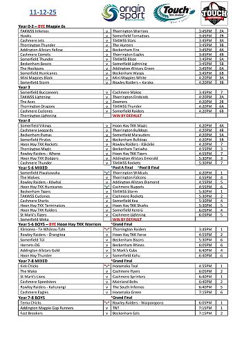 Children need to be at Centennial Park 30mins prior to game start for team training and warm up, please be on time for your coach. Meet beside the field you are playing on. The park is very busy please allow time for car parking.