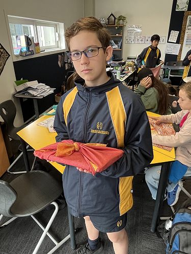 Kaori kindly taught a class of our Year 7 and 8 students how to use traditional Japanese Furoshiki cloths to beautifully wrap a variety of items.
