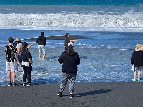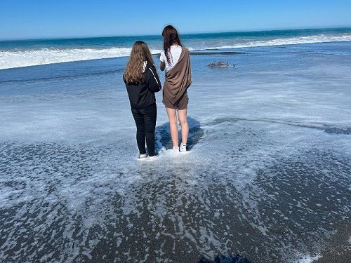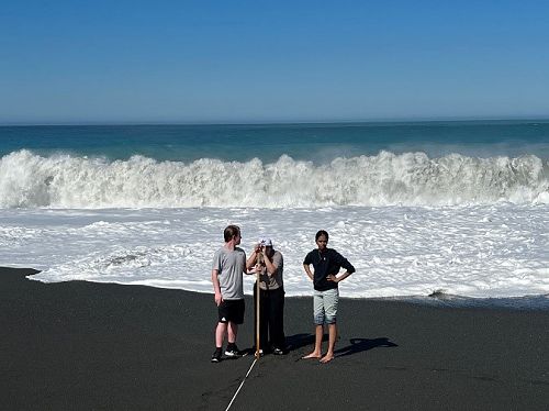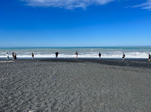 The day started well with all the students and staff arriving at school for their pre-departure RAT test. Some of them were a little apprehensive but everyone managed to return a negative result, so off they went. The trip took them up to Cheviot stopping for a break before continuing up to the Kaikoura township. After lunch they headed up to the far end of North Beach, close to the Hapuku river collecting the first lot of data. Everyone was extremely organised having practiced around the school prior to leaving.