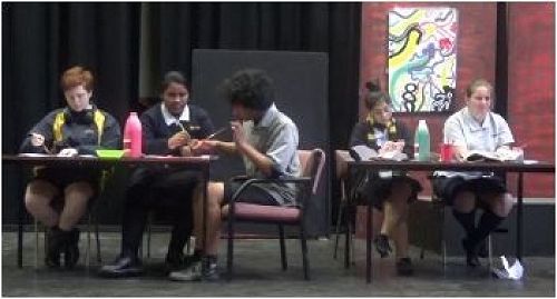 The Hornby Heroes team started by discussing dystopian genres and defining sci fi by drawing on the texts they had studied in English. They carefully planned a film with a classical structure, then took the leap into parody and subverting the genre. Their film was a hero's journey, complete with furry side-kick, white-bearded mentor and martial arts training. Naturally there were special effects such as solar systems on string, hand-drawn space craft and state of the art, tinfoil weaponry. They learned a lot along the way, how to cope when a camera won’t focus (get another camera), how to eat sushi with a fork (why?), not to carry your weapon horizontally through a doorway (snap).