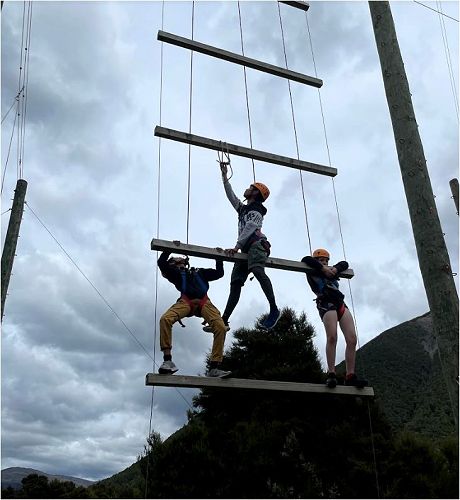 The students were challenged first by being put randomly into groups – this meant they needed to find out what strengths each of them could bring to enable them to complete the different activities. These ranged from having feet firmly stuck in the mud to being many meters up in the air.