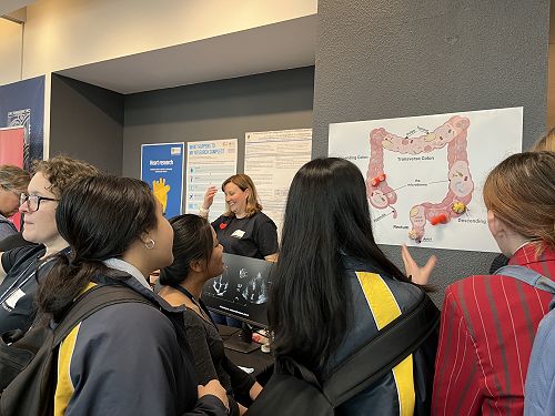 We then split into groups where our students got to walk around and interact with professionals and see hands on examples of medical research and a ginormous colon!