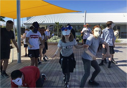 NCEA students explored Shakespeare, musical theatre and comedy. All classes explored our wonderful theatre space including the basics of sound and lighting technologies. We were thrilled to get new stage curtains, which really helps sound quality. The outdoor stage is also an asset, especially for the mask work and Shakespearean fight scenes.