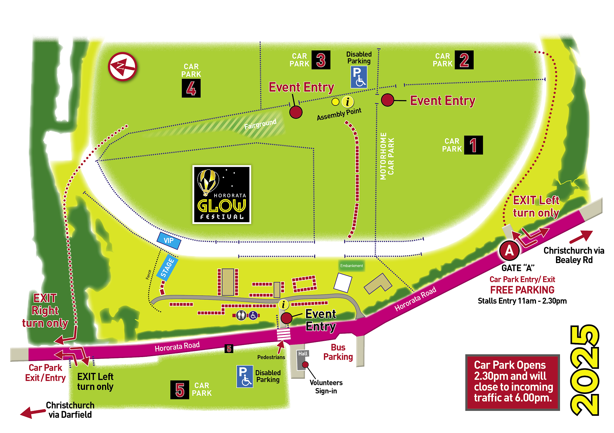 Below is an overview car park map. There is no parking on the road. There will be plenty of volunteers in the carpark so once you get to Hororata please follow their directions. You must have a ticket for the event to access the car park.