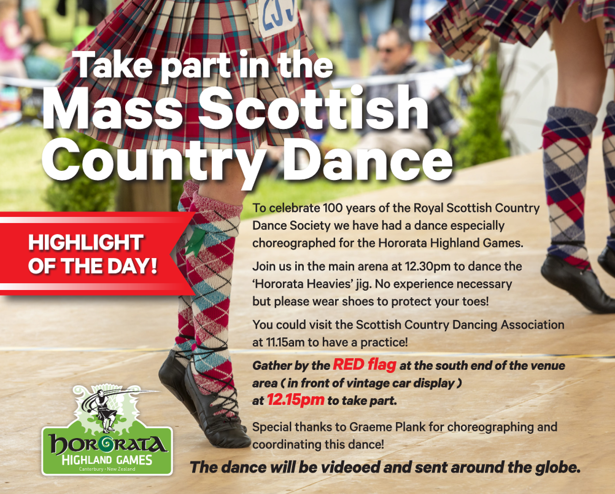 Join the massed Scottish Country Dance Hororata Community Trust — November 10th, 2023 New for 2023, there will be a massed Scottish Country Dance where everyone can join. Click here to view the instructional video with Hilary and Fitzy from The Breeze radio station.