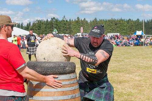 Hororata Stones are a version of McGlashan Stones. Athletes must lift five Stones onto the top of wine barrels, racing the clock (stones must remain on the barrel). The fastest athlete to complete all stone lifts wins. The stone increase in weight at each barrel from 90kg to 140kg. This is one of the most exciting and fast-moving events to watch at the Hororata Highland Games. The Hororata Stones have been donated by David Huxley from the Tartan Warriors.