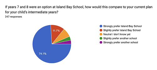 Thanks to everyone who shared their views about learning options for Years 7 and 8. We received 247 survey responses from 258 families. There was overwhelming support for Island Bay School to consider providing teaching for the intermediate years.