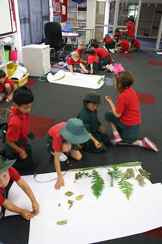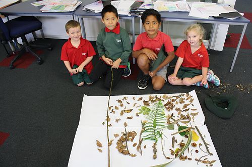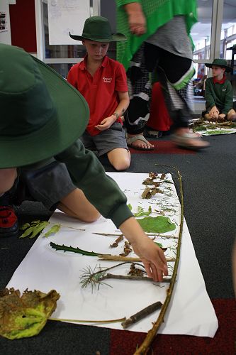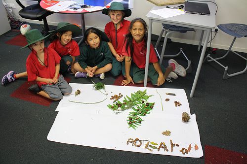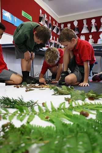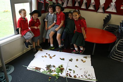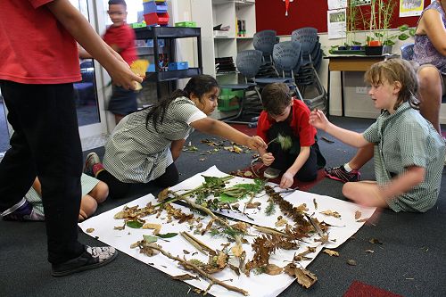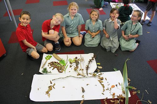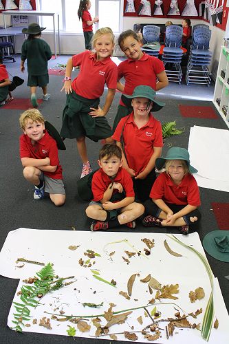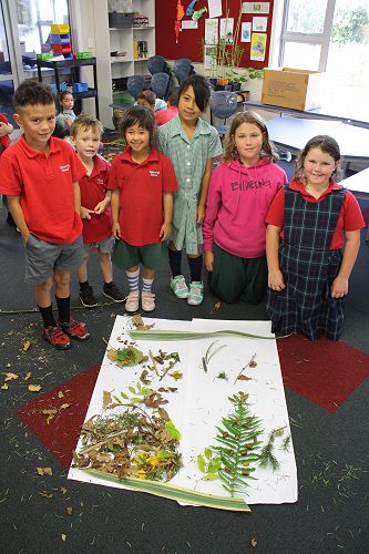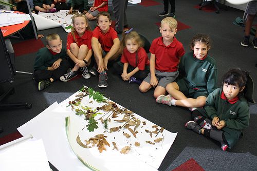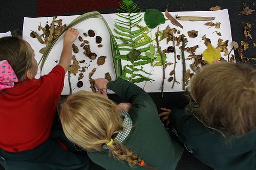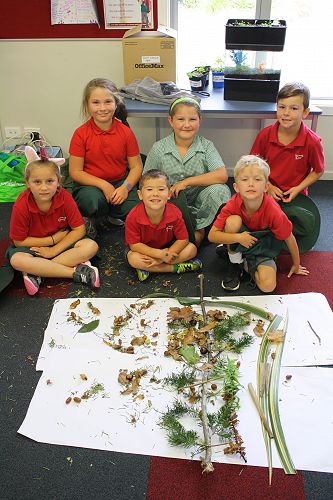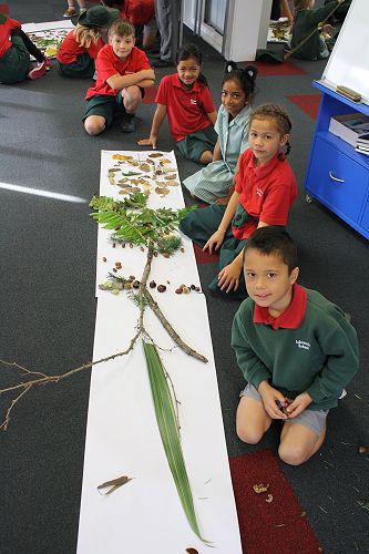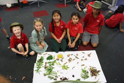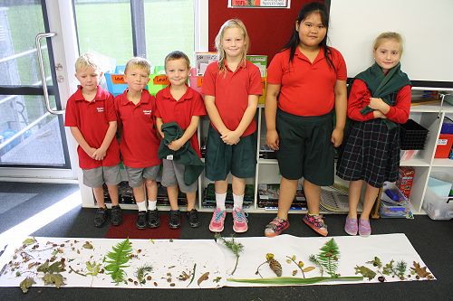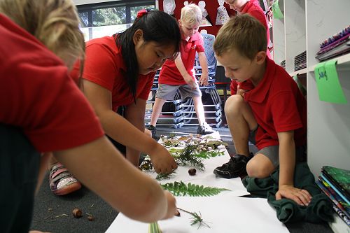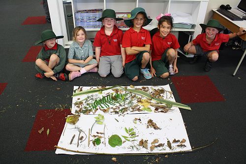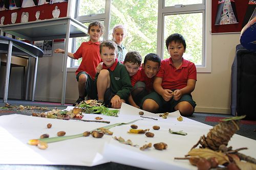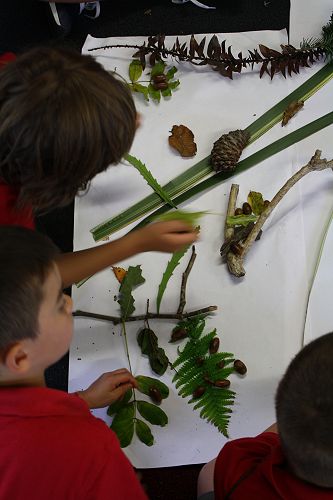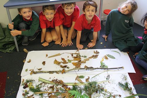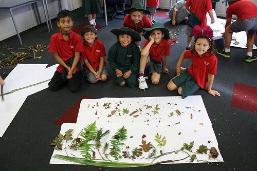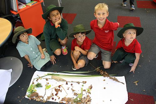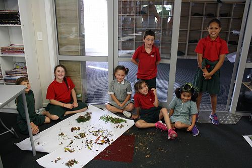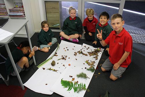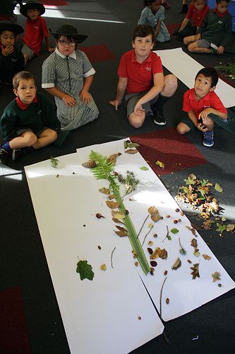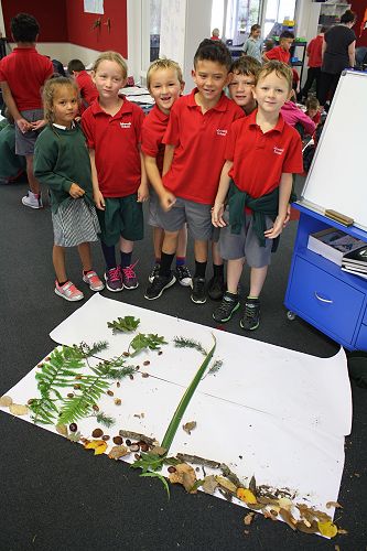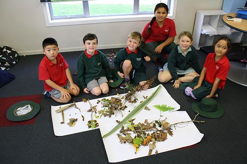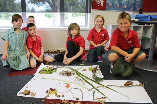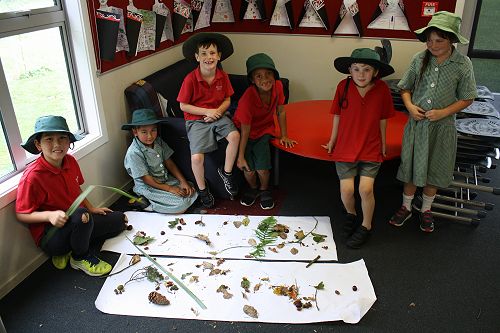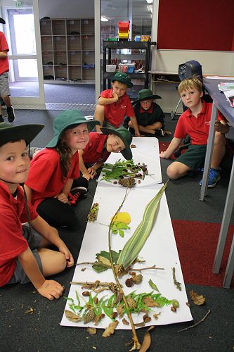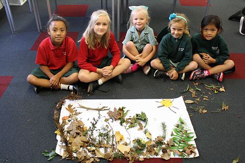 Part of our 'Education Outside The Classroom' today was working with other students on an environmental art piece. Students were put into groups with year levels ranging from New Entrants to Year 4. Each group was challenged to make a piece of art by working cooperatively with natural materials. The results were outstanding!