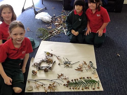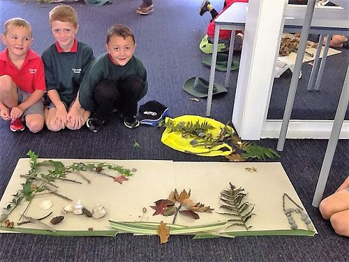 Today during EOTC the children created some fantastic artwork using things collected from the Environment.