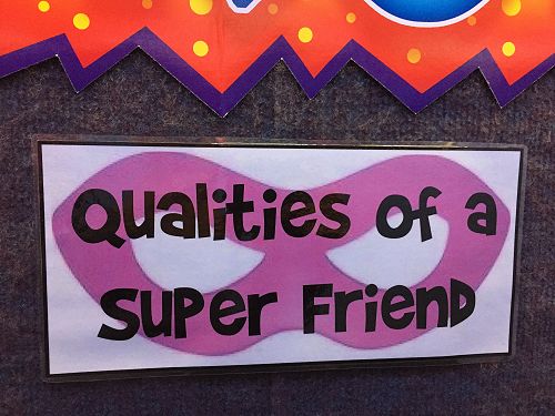 He also helped us to respond to a variety of situations where we determined whether they were above or below the 'Super Friend' line and gave us a couple of scenarios (through a short video and a book) of what an 'Upstander' would do.