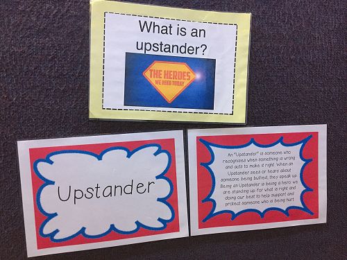 An 'Upstander' is some who sees something that is wrong and helps, positively, to make it right. They are also known as a SUPER FRIEND!