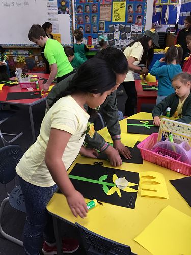 Today Room 3 and 12 made daffodils for buddy class. Check out our lovely artwork. A great example of Tuakana Teina.