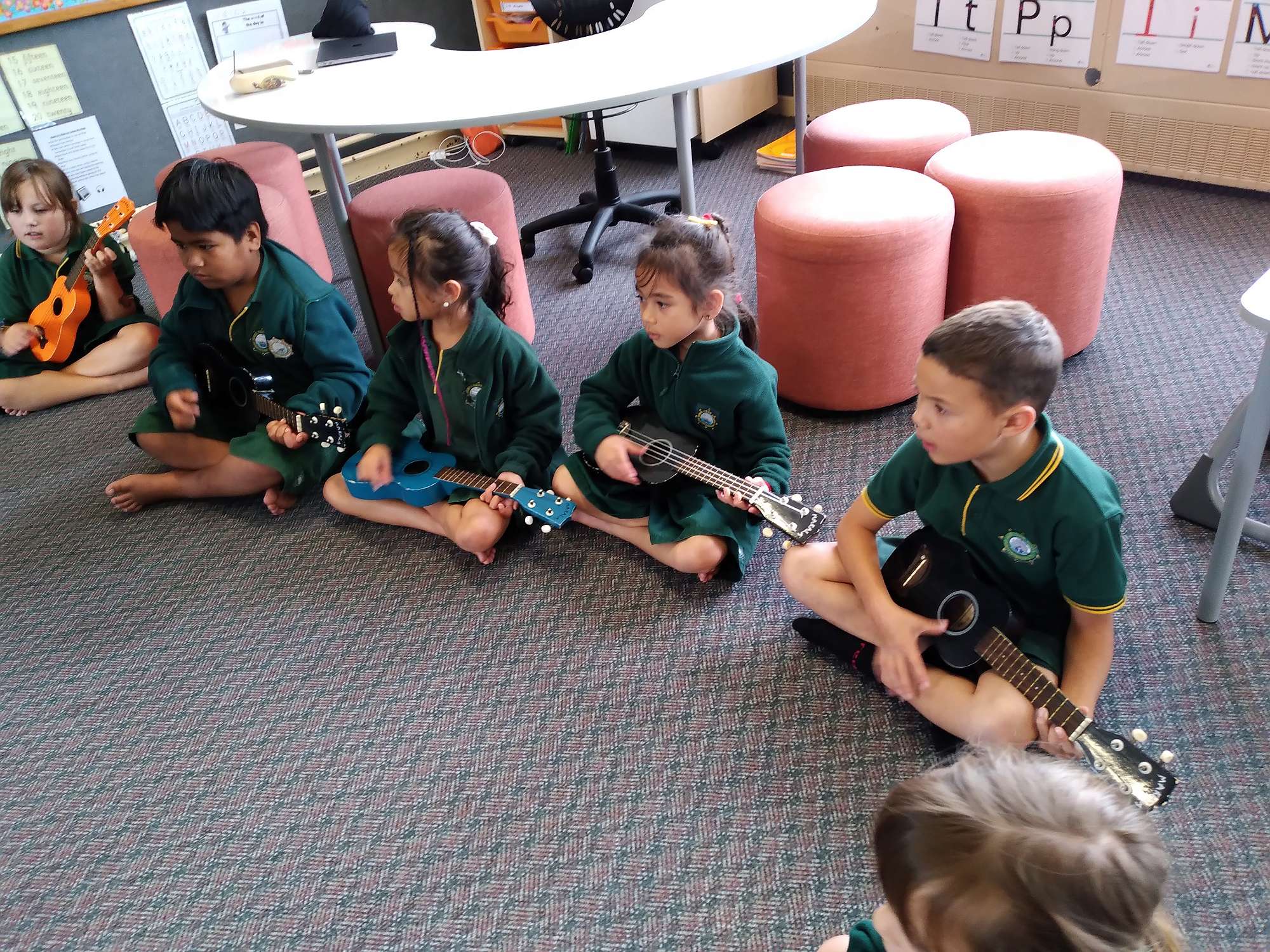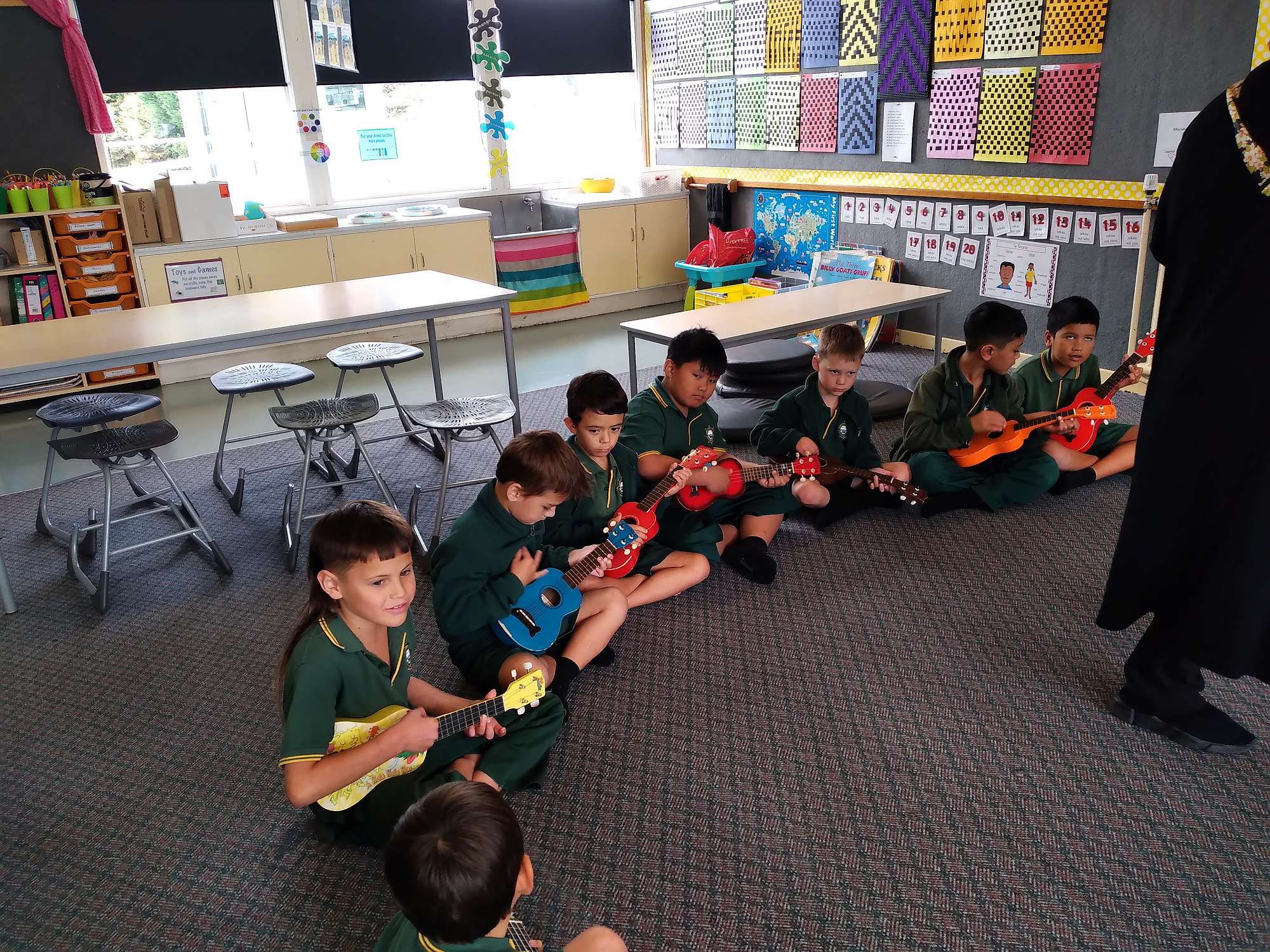 Our first ukulele lesson in Room 4 and Room 6 with Zettie. We learned how to hold the ukulele and played several songs in the chords of c.