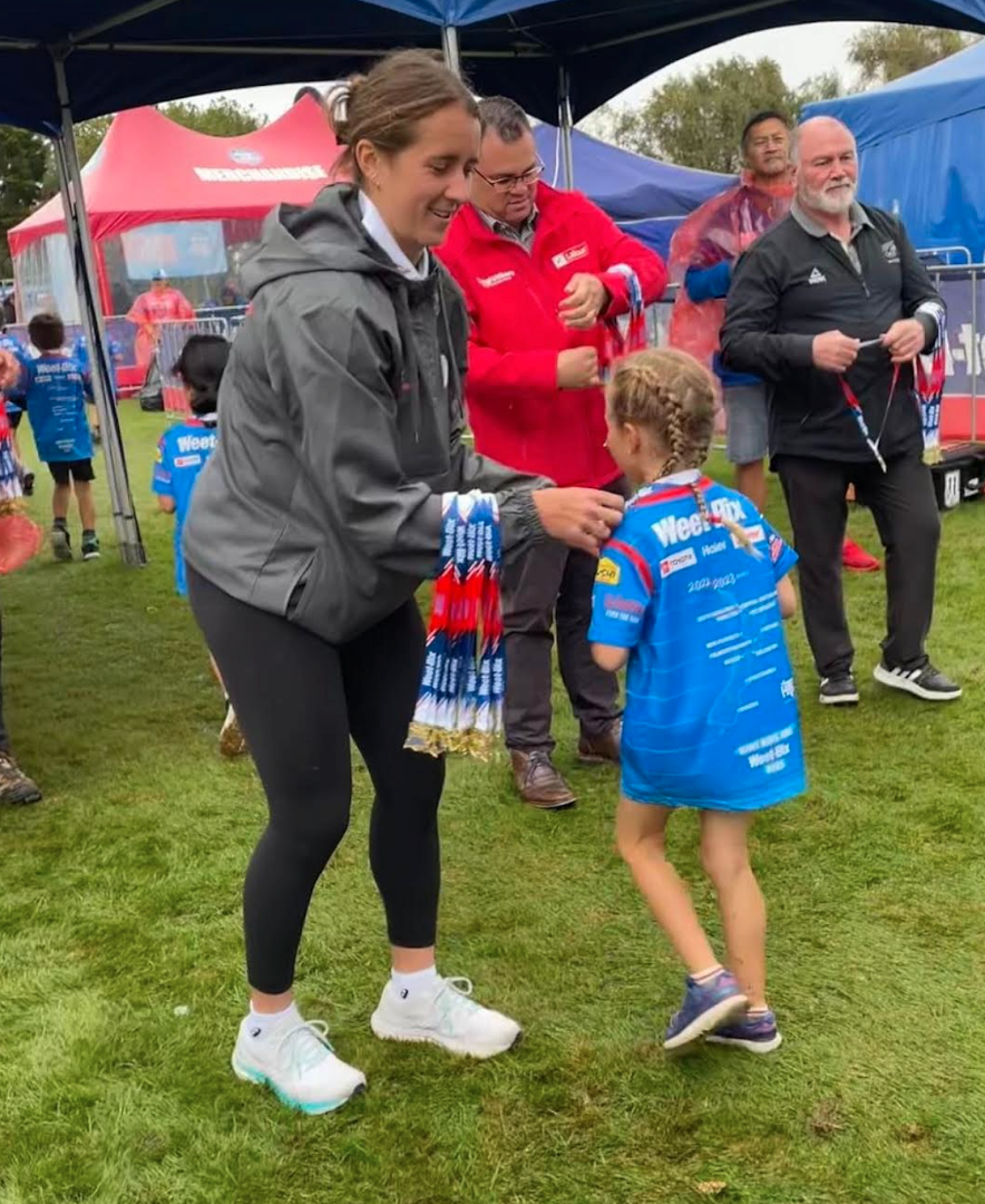 Pictured above is Emily Bell who participated in the Weetbix Try in Palmerston North on Tuesday. Emily received her medal from Kyla Whitelock following a 50m swim, 4km cycle and 1.5km run. Ka rawe Emily!