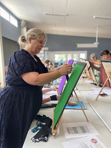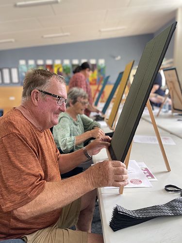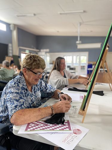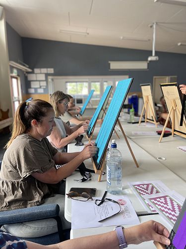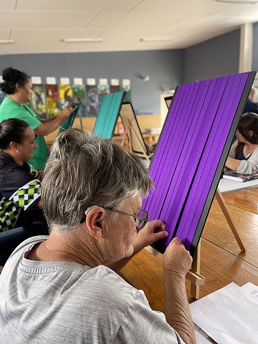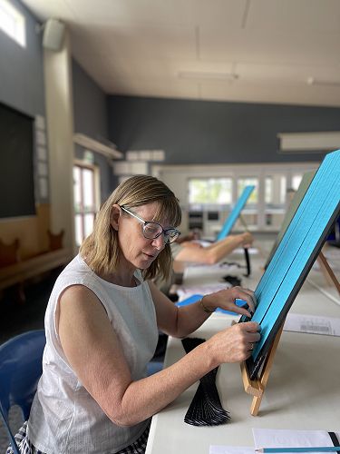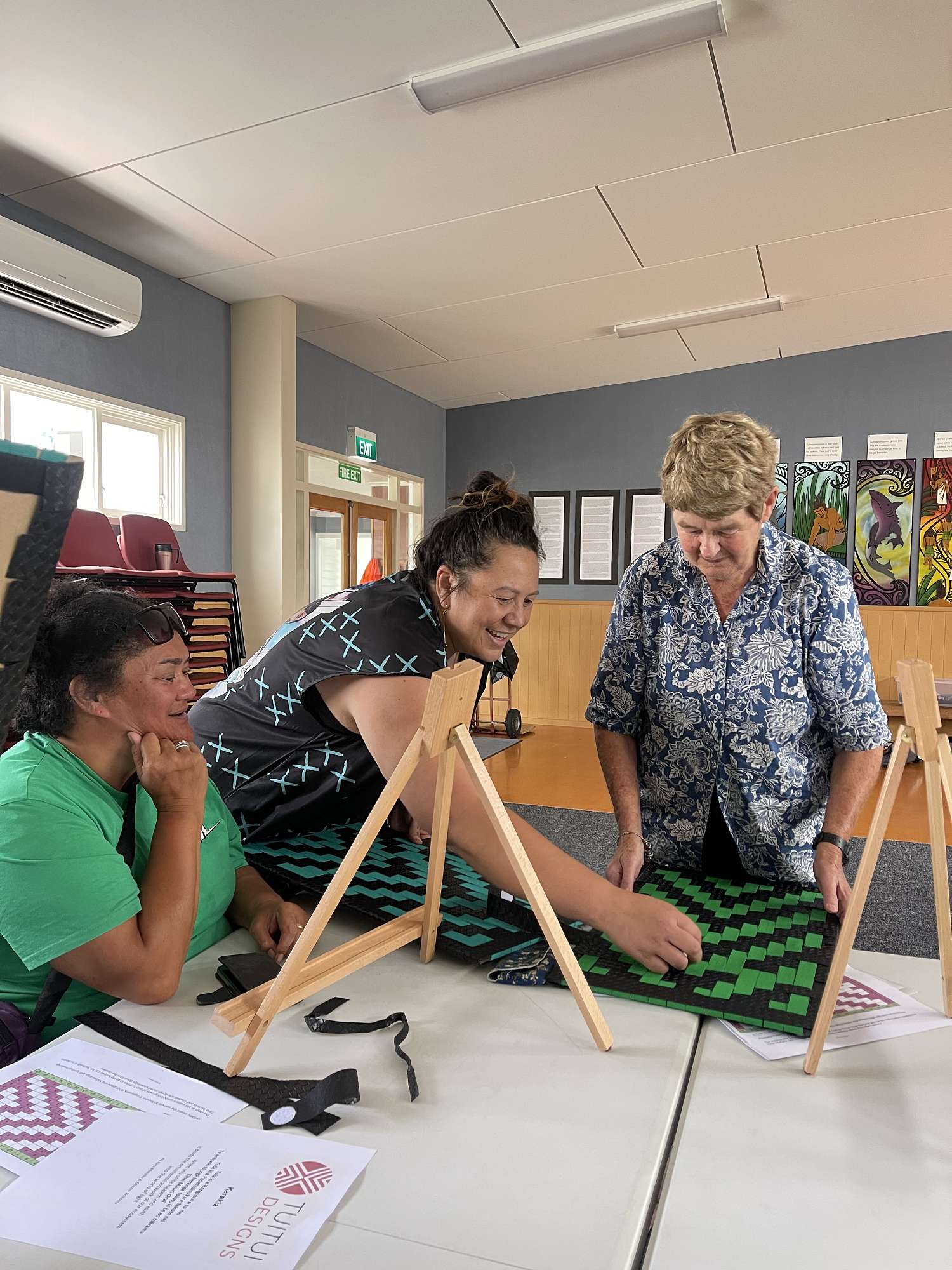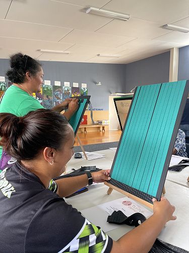 Pictured below are our staff working on 'teacher only day' weaving their tukutuku.