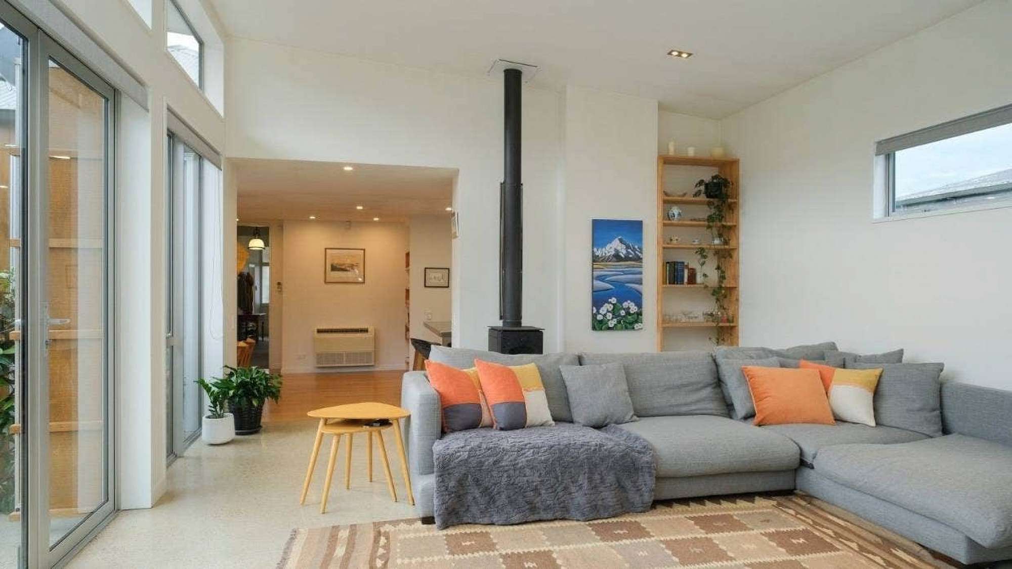 You'll be cosy in a southern winter, with double-glazed windows, full insulation, and multiple heat sources including a woodburner, heat pumps, and wall mounted heaters.
