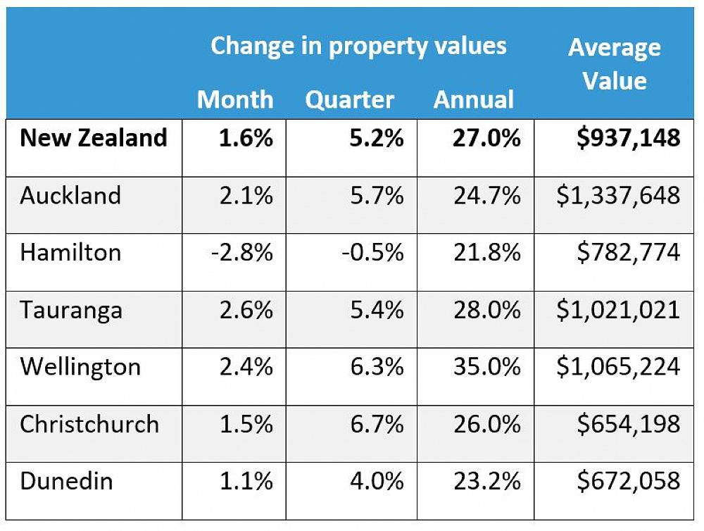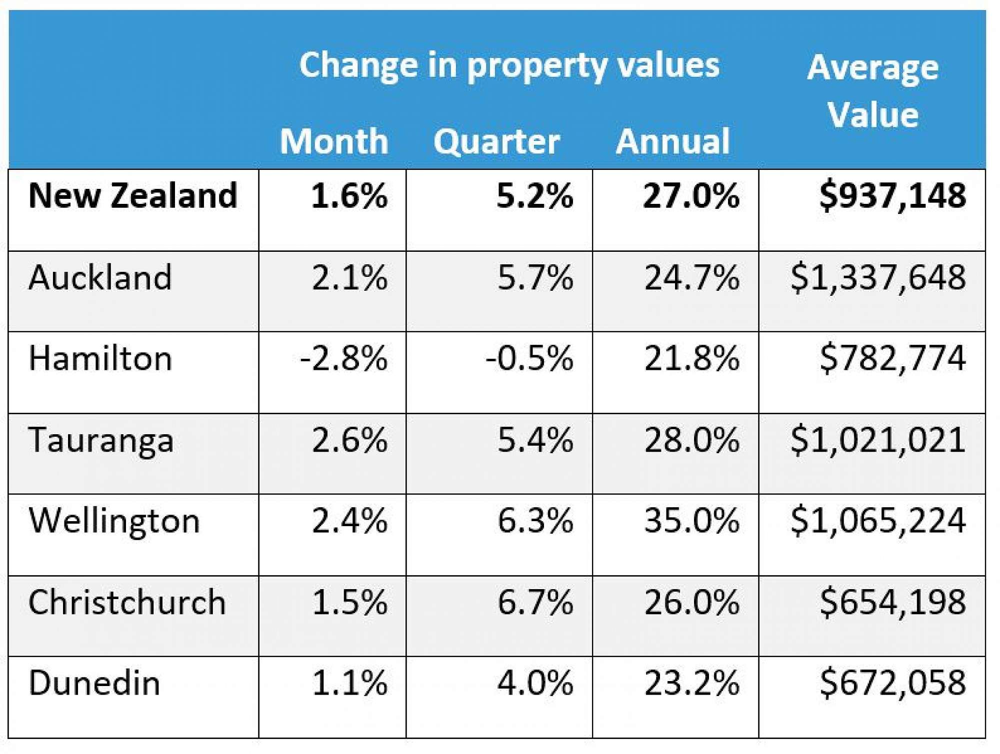 “In absence of these additional stimulatory measures we do not expect any Covid-induced surge in prices to linger. In fact the current LVR settings are tighter than prior to the initial lockdown (40% deposit requirement for investors) and the Reserve Bank has been very clear that the next move for the OCR is up. In a recent release they went as far as saying that had we not been plunged into the snap lockdown on the day of their last monetary policy review, then they would have lifted the OCR. Guidance then, for their next decision on October 6 is almost certainly an OCR increase of at least 25 basis points, even if parts of the country remain at alert level three or four. This will maintain a degree of upwards pressure on mortgage rates which historically have worked as a headwind against value growth.”