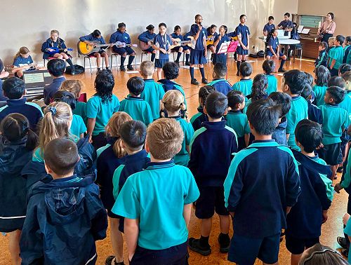 Every Friday, a team of students leads our school in singing and dancing praise and worship songs to Jesus.